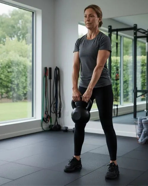 Ja, natürlich, wenn du einen rutschfesten Boden oder eine Sportmatte hast und genügend Platz, kannst du auch in deinem Zuhause Kettlebell Übungen machen.