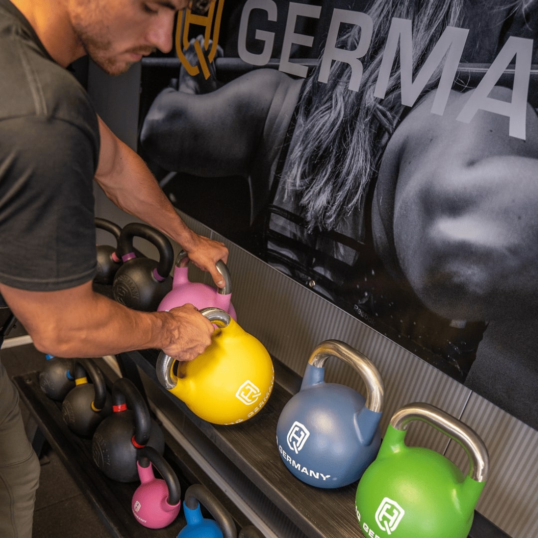 Welches Gewicht dein Kettlebell Set haben muss, hängt von deinem Trainingslevel und deiner Muskelmasse ab. Trainierst du mit zu leichten Kugelhanteln, beanspruchst du deinen Body nur ungenügend und der gewünschte Trainingserfolg bleibt aus. Zu schwere Produkte erhöhen die Verletzungsgefahr, verschlechtern deine Form und machen einige Übungen unmöglich. Anfänger beginnen am besten mit leichteren Gewichten wie einem Starter Pack mit 4, 6 und 8 kg. Wer bereits Sport treibt, kann auch ein etwas schwereres Set mit 6, 8 und 12 kg wählen – insbesondere wenn der Fokus auf Beinübungen liegt. Fortgeschrittene Sportler sind meist mit 12 und 16 kg gut bedient. Wer dem Kettlebell-Training verfallen ist, kann direkt zu einem unserer Elite Pakete greifen und erhält gleich 5 Kettlebells zwischen 8 und 24 kg. So steht dir für jede Übung das richtige Gewicht zur Verfügung.