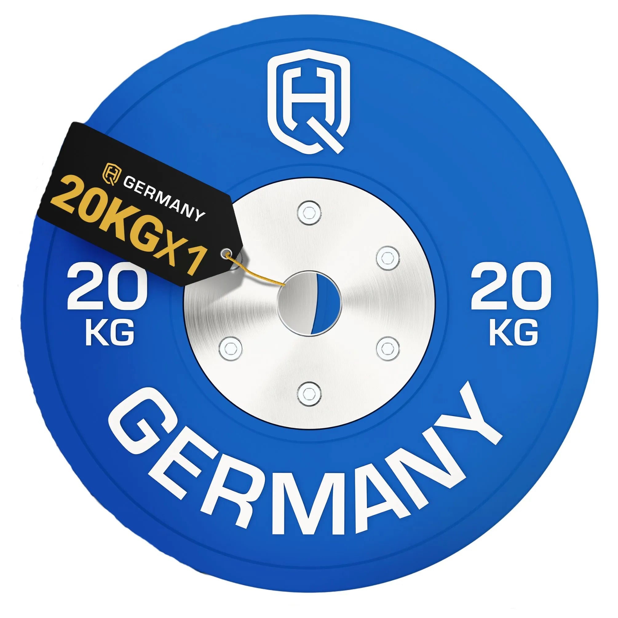 Die Competition Bumper Plates von HQ Germany sind für den Wettkampf konzipiert und erfüllen die höchsten Qualitätsstandards, die anspruchsvolle Athleten erwarten. Gefertigt aus hochwertigem Performance-Vollgummi bieten sie ein präzises Training mit einer Gewichtstoleranz von maximal ±10 Gramm. Dies ermöglicht dir, während deiner Trainingseinheiten auf die Genauigkeit deiner Gewichte zu vertrauen. Mit einem Härtegrad von SHORE-A 90 zeichnen sich diese Hantelscheiben durch außergewöhnliche Langlebigkeit und Widerstandsfähigkeit aus. Wir haben unsere 50 mm Hantelscheiben auf über 20.000 Drops aus 2 Metern Höhe getestet, sodass du sicher sein kannst, dass sie auch dem intensivsten Training standhalten. Ein bemerkenswertes Merkmal dieser Bumper Plates ist der hochwertige Stahl-Innenring, der mit Industrieschrauben fest verbunden ist. Jede Gewichtsscheibe hat eine spezifische Farbe entsprechend dem internationalen Standard, was dir hilft, in deinem Training stets den Überblick zu behalten. Zusätzlich sorgt das 3D-Logo in weiß bzw. schwarz für einen ansprechenden visuellen Akzent, der den professionellen Look deiner Ausrüstung unterstreicht. Entscheide dich für die Competition Bumper Plates und setze neue Maßstäbe in deinem Training!