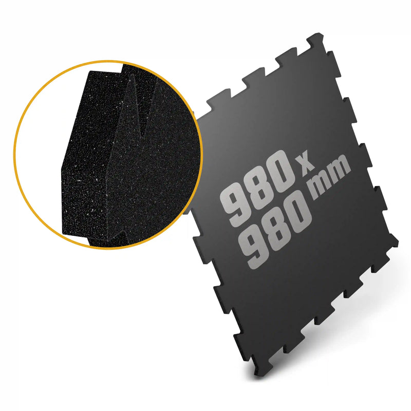 Der großformatige Puzzle-Sportboden von HQ Germany im Maß 980 x 980 mm vereint robuste Qualität mit zeitsparender Verlegung – ideal für große Trainingsflächen. Hergestellt aus hochverdichtetem SBR- & EPDM-Granulat bietet er ein belastbares, rutschfestes und langlebiges Trainingsfundament für funktionelles Training, Hantelbereiche oder Cardio-Zonen.